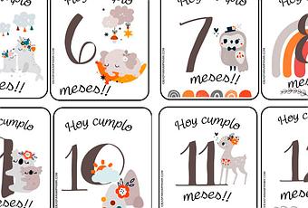 Las tarjetas de cumplemes para bebés se han convertido en una tendencia encantadora para los padres que desean conmemorar y recordar los primeros meses e hitos importantes en el crecimiento de sus pequeños. Estas tarjetas son una manera dulce y creativa de capturar esos momentos preciosos. Para hacerlo aún más especial, hemos creado tarjetas para que puedas descargar e imprimir gratis, cubriendo desde el primer mes hasta el primer año de vida de tu bebé. Incluye también "hitos" importantes como el nacimiento, la primer palabra, el primer diente y los primeros pasos!