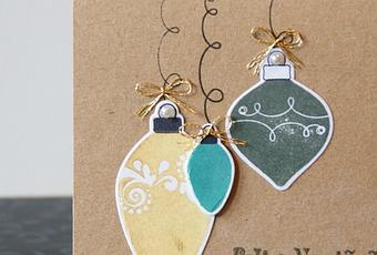 Las tarjetas de hoy también son con decoraciones del árbol. Para dos de las tarjetas he utilizado los troqueles del set “holiday ornaments” SimonSaysStamp (SSSD 111382). Y para la otra el set a juego de sellos, “ornaments” (SSS101438)