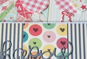 Y de troqueles: “Balloons” (SSSD111338), “hello you” thinlits de Stampin’ Up (137363) y “line shapes” (SSSD111416). Y en una de ellas un poco de cordel Twine en rojo y blanco para el lazo del globo.