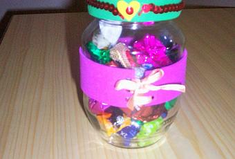Hoy quería enseñaros un tarro de cristal que he hecho decorado con goma eva que nos puede servir como detalle para regalar. En mi caso, lo he hecho para el cumpleaños de una amiga y dentro le he puesto caramelos y bombones.