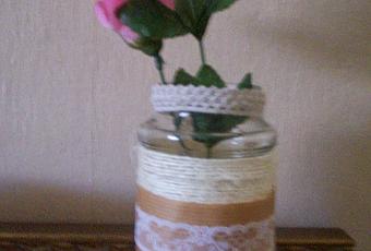 Luego también decoré uno con cuerda y puntilla que lo quería como florero y que diera un aire chic y luego otro con puntilla y papel rosa.