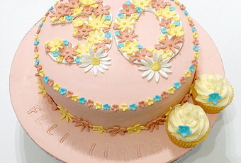 Hoy no os traigo receta, solo me paso por aquí para enseñaros la última tarta que he hecho. Era para el 30 cumpleaños de mi amiga Yolanda. Le preparamos una cena sorpresa!! Y este super pastel (era enorme) con dos cupcakes a conjunto.