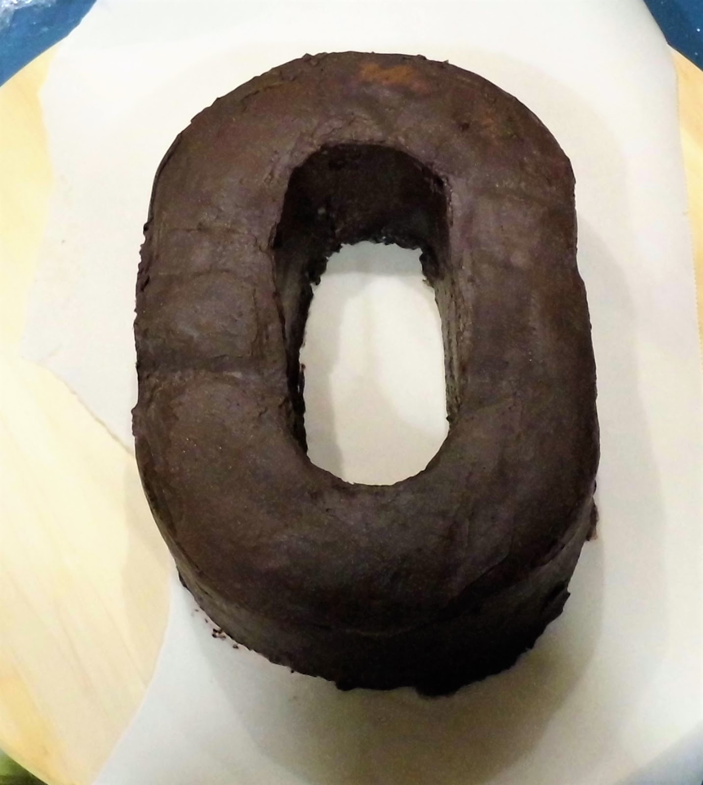Bañamos los bizcochos con el almíbar, rellenamos y cubrimos de ganache y yo dejé los números con el chocolate toda la noche en la nevera así se pueden trabajar mejor.