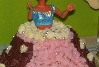 Bizcocho de leche (uno mas grande y otro pequeño) Ver receta aquíFrosting: 250 mantequilla sin sal a temperatura ambiente, 400 azúcar glas, 3 cucharadas de leche, un chorro de vainilla, cacao y nesquik de fresabolitas plateadas de azúcar, una muñeca Barbie. (Nosotras hicimos doble receta)PREPARACIÓN:Primero preparamos los bizcochos, nosotras hicimos dos, uno pequeño en una fuente, que si veis tiene forma como redondeada y otro mas grande, una vez fríos cortamos y ponemos uno encima de otro y le vamos cortando para dar la forma del vestido.Preparamos el frosting: Batimos bien la mantequilla y le vamos añadiendo el azúcar leche y vainilla, separamos en tres bol y a uno le añadimos cacao, a otro nesquik de fresa y el otro tal cual.Vamos rellenando las capas, nosotras con el de chocolate, Noemi especifico que quería la tarta con chocolate, así que a rellenas de chocolate.El bizcocho de arriba, el mas pequeño, le hicimos un agujero para poder meter la muñeca a la que quitamos las piernas, le pusimos un poco de papel film.Cubrimos lo que va a ser el vestido con mas frosting de chocolate y empezamos a adornar a gusto el vestido.