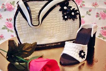 Para el montaje, el molde era uno circular así que corté un poco por abajo para la base y otro poco por arriba, luego a la mitad para rellenar y cubrí con crema todo. Y con paciencia, rodillos, texturizadores y demás a cubrir con fondant para parecer un bolso, el zapato lo hice con anterioridad y CMC para que quedase duro para el momento, de hecho hice un par pero uno no resistió la tensión y se rompió.