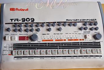 Esta tarta me la encargó un amigo de mi hijo para su novia. Quería una tarta en forma de mesa de mezclas (SECUENCIADOR TR-909) y así lo hicimos