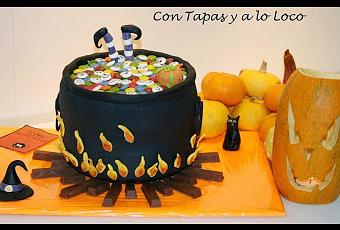 Una tarta rellena de ojos de lacasitos!!!! de calabazas de azúcar y patitas de bruja!!!!