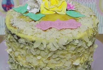 Crema en Microondas Crema TM5 Decoración almendras fileteadas y flores de fondant