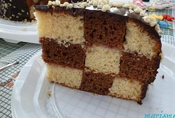 Hace tiempo que quería preparar esta tarta para el cumpleaños de mis sobrinos, pues como cumplen tres en el mismo mes nos juntamos todos en el campo y los celebramos todos juntos, pasamos una tarde muy agradable. La primera vez la vi en el blog de "Kanela y Limón" que todos conocéis, pero iba cubierta con nata y yo la quería de chocolate para los chiquillos. Y mirando mirando por ahí me encontré la preciosa tarta damero de "La Juani de Ana Sevilla" a la que también todos conocéis. Como es costumbre en esta casa adapté la receta a mis gustos, que para eso son las ideas. Hice los bizcochos a mi manera y como a mi me gustan y me salió una tarta impresionante para más de una docena de personas y aún así sobró alguna ración. Entre capa y capa en vez de chocolate que ya me parecía bastante le puse mermelada casera de fresas para que le diera algo de jugosidad pues el exceso de chocolate da luego mucha sed. Espero que os guste mi versión.