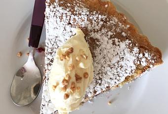 – helado de vainilla, nata montada o creme fraiche para presentar