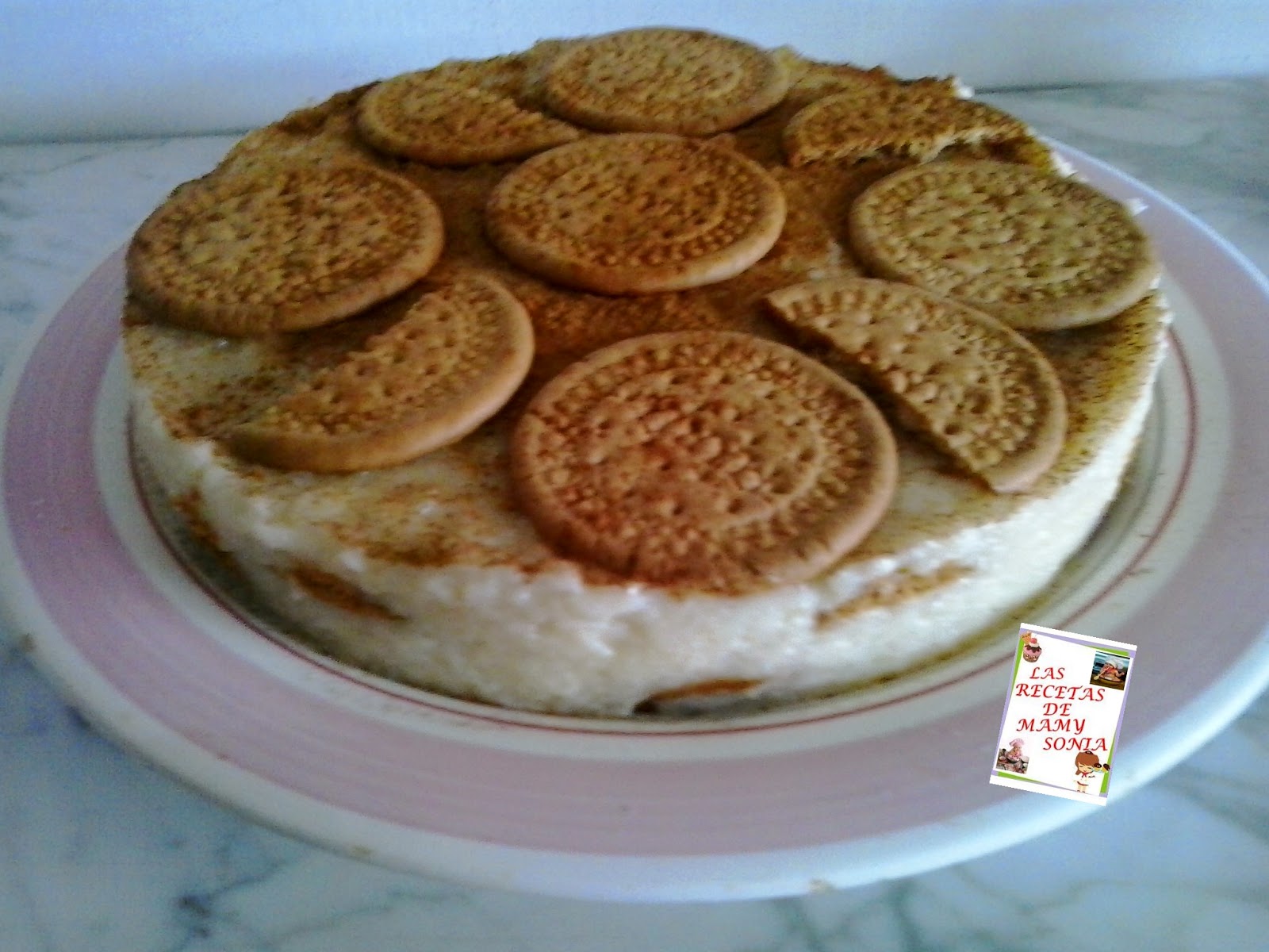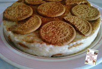 Hoy os traigo esta deliciosa tarta que la hice pensando en mis hijos que les encantan las galletasy el arroz con leche los vuelve loco y como siempre estoy pensando que puedo hacer nuevo se me