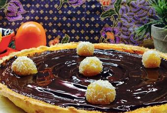 INGREDIENTES: Chocolate: ½ tableta de cobertura de chocolate y ½ vaso pequeño de agua. Bolitas de naranja: Mermelada de naranja y coco. Tarta: 1 masa de hojaldre, 350 g de puré de calabaza, 250 g de nata, 3 huevos, ½ cucharadilla de jengibre, 1 cucharadita de canela, 4 cucharadas de azúcar y pizca de sal.