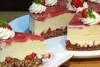 Tarta de chocolate blanco con fresas y sin horno. Esta tarta es la favorita de mi hijo David ya que el chocolate blanco es su preferido y si le añadimos las fresas ¡¡ufff!!. Además lleva una base extracrujiente de avellanas, maíz tostado y chocolate. El contraste de su acidez y la dulzura del chocolate blanco es una auténtica delicia, seguro que será vuestra favorita también.