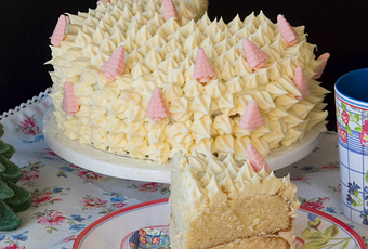 La tarta de hoy la ha hecho mi hija mayor estas vacaciones. Yo la he ayudado un poco con los bizcochos, pero la decoración la ha hecho ella sola, de principio a fin. La verdad es que la manga pastelera y yo no nos llevamos muy bien, tendré que practicar...
