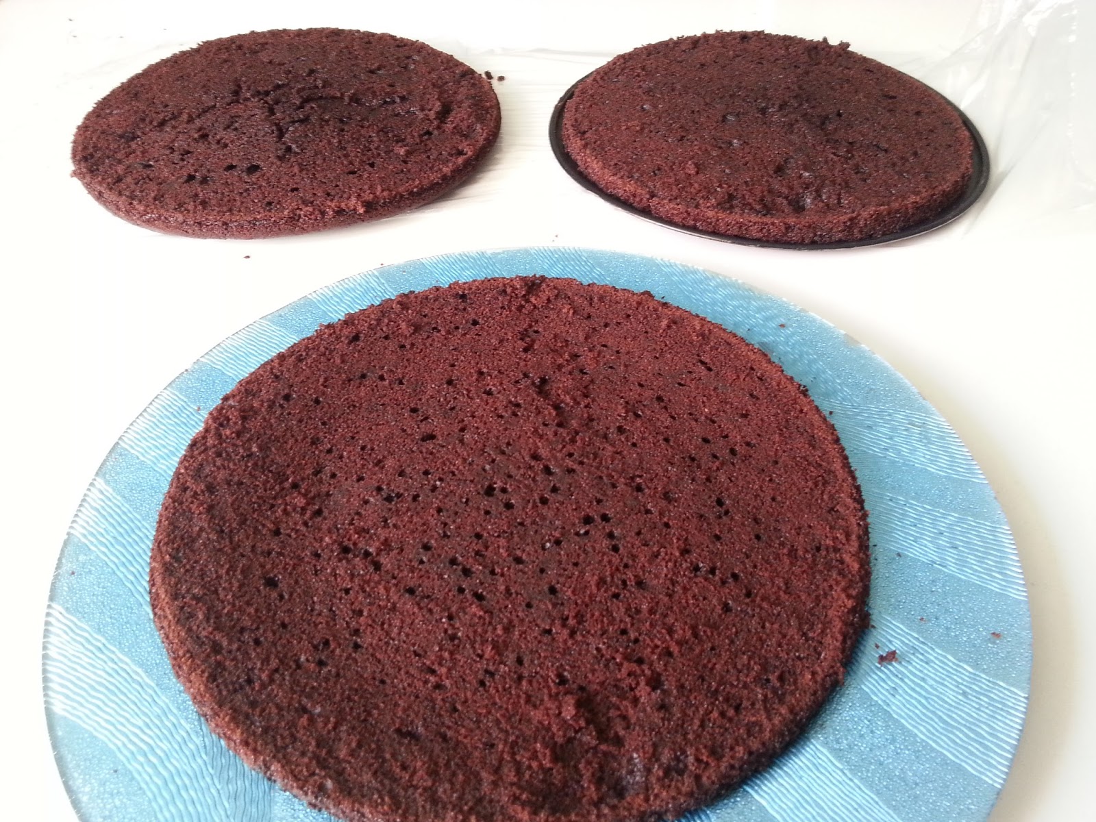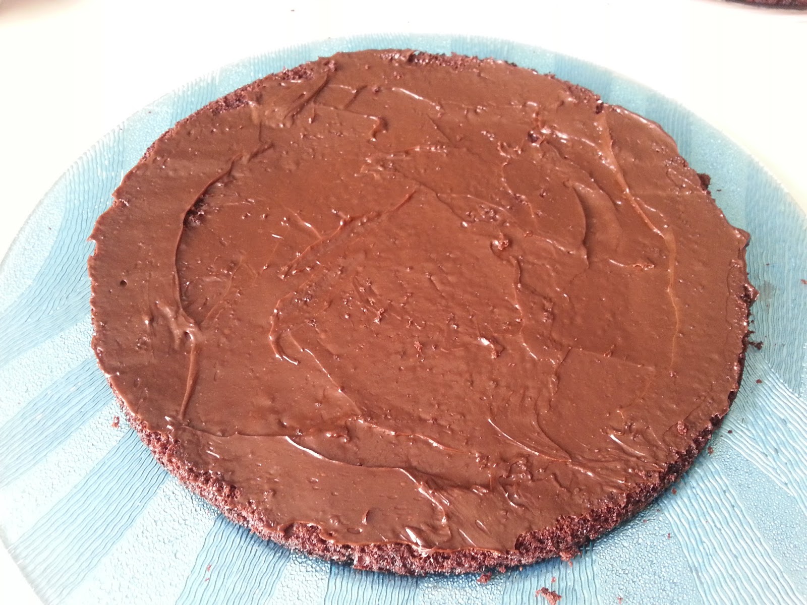 Bueno, a lo que vamos, que la receta es bien fácil, por un lado tenéis que hacer el Bizcocho energético de chocolate que os presenté hace unas semanas. Súper fácil y buenísimo, pero hecho en molde redondo de tartas.