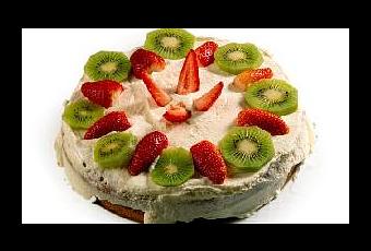 - Cubre todo el bizcocho con la nata montada y decora con las frutas partidas (fresas, kiwis...).