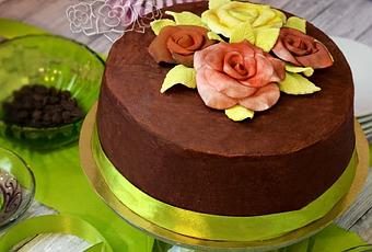 9. Decora con unas rosas o con las flores que más te gusten y unas hojitas de fondant. Estoy preparando un tutorial sobre cómo hacer rosas tan bonitas y tan primaverales como las de esta tarta. Éstas están pintadas con colorante en polvo sobre la rosa de fondant blanco para darle mayor realismo.