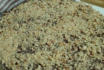 Poner los huevos con el azúcar en un recipiente y batir con batidora de varillas durante, al menos, 4-5 minutos. Tiene que quedar una masa muy esponjosa de color pálido. Tamizar encima la avellana molida, la almendra molida, el cacao, el café y la sal. Incorporar con una espátula o lengüeta, con movimientos suaves envolventes.