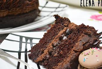 Y de la tarta en sí solo os puedo decir lo mismo de siempre: Los bizcochos quedan sorprendentemente esponjosos y la ganache de chocolate y café (la misma con la que rellené los marcarons) está tremendísima, para comerla a cucharadas. Lo que menos me ha convencido -aunque mínimamente- ha sido la crema de mantequilla del relleno (últimamente las buttercreams me saturan un poco). A pesar de ello, la inmensa cantidad de chips de chocolate que la acompañan hacen de ésta una tarta irresistible.