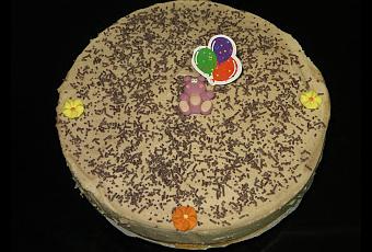 Se echa en la base de nuestra galleta y la dejamos enfriar un mínimo de cuatro horas, pero es mejor dejarlo de un día para otro. Una vez que ya se ha enfriado sacamos de la nevera, desmoldamos y decoramos a nuestro gusto en este caso con fideos de chocolate.