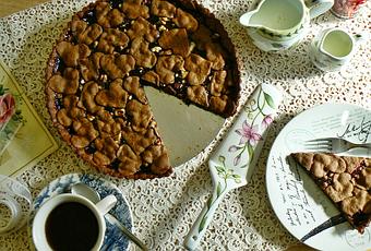 La cubierta superior puede hacerse con el clásico enrejado entrecruzado de las pasta frolas de membrillo o batata.