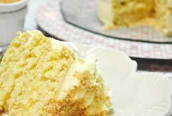 Tarta de coco y vainilla rellena de crema pastelera: