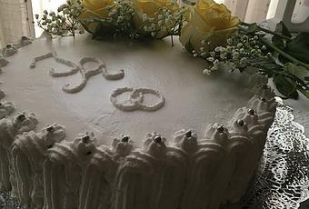 Montaje de la tarta: La crema de limón la dividimos en tres. Ponemos una plancha de bizcocho sobre la fuente se servir, bañamos con el almíbar y cubrimos con la crema de limón. Esta operación la repetimos dos veces más. Terminamos con una plancha de bizcocho que también bañamos la superficie con el almíbar. Retiramos el merengue que teníamos reservado y lo ponemos en una manga pastelera con boquilla rizada y procedemos a decorar según nuestros gustos, dando un toque final con unas perlitas plateadas.