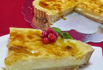 Espolvorear con azúcar y quemar con soplete, o gratinar horno fuerte 3 minutos, o llevar a la nevera y en frío, adornar a gustos.