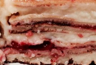 Una vez listos todos los elementos, es el momento de montar la tarta. Vamos alternando un crep, crema pastelera una capa fina, otro crep, confitura de fresa o la que mas nos apetezca, otro crep, mas crema, otro crep.... y asi hasta que terminemos con los creps, siempre cerrando la tarta con uno, lo espolvoreamos con azucar glass y a la nevera tapadita para que coja cuerpo y podemos servirla, palabra, una delicia.