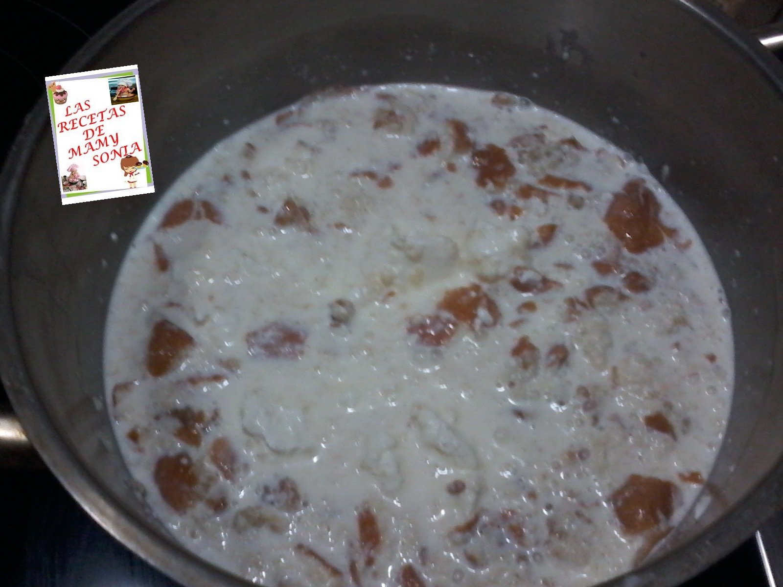 Removemos con unas varillas para que no se formen grumos y dejamos que la preparación coja