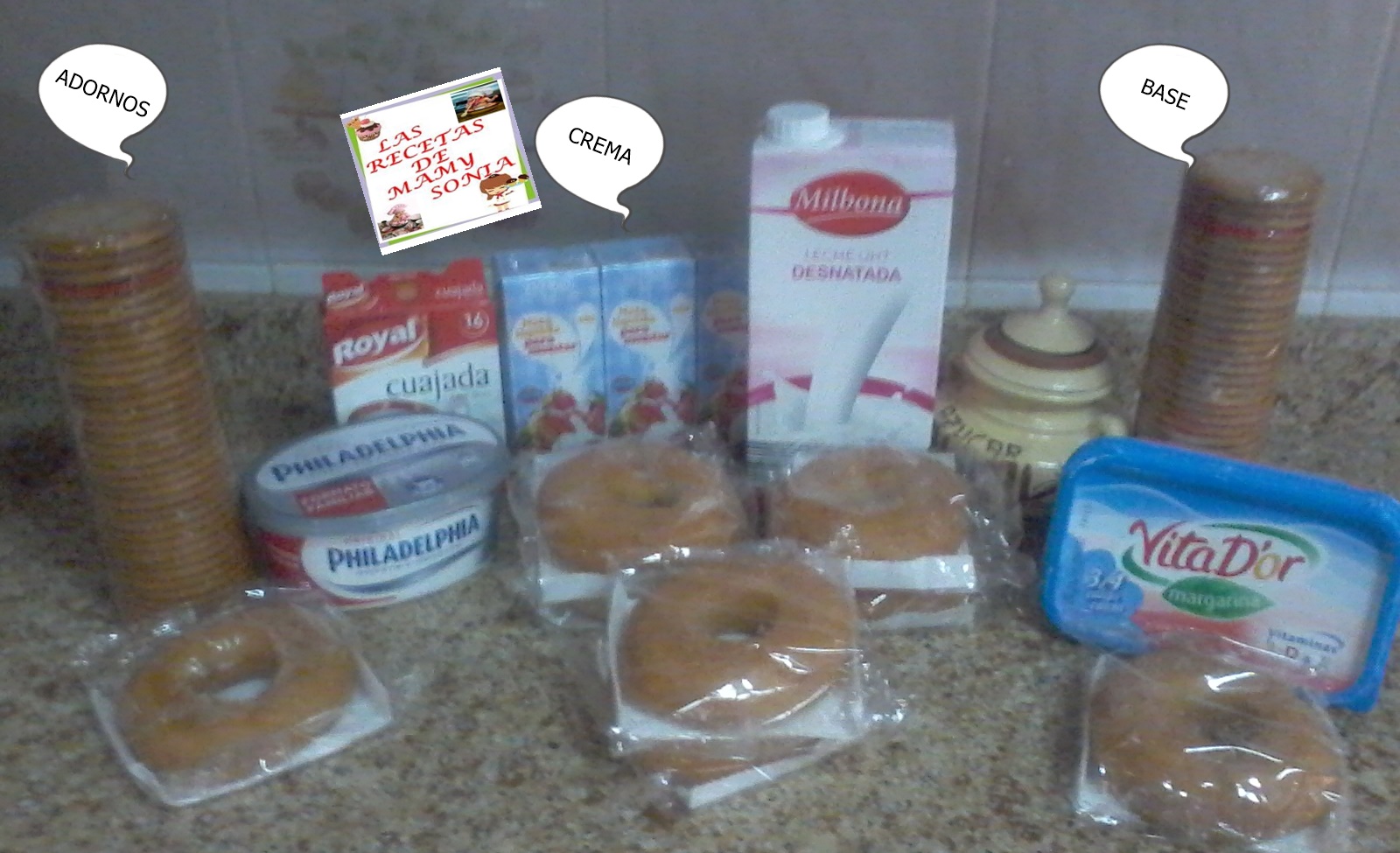 En una cacerola pondremos la nata, la leche( menos 50 ml,) el azúcar, los donuts y el queso cremoso