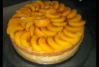 Escurrimos bien los melocotones, los batimos con los huevos, maizena, nata y azúcar, lo echamos todo en una flanera,o molde redondo. Calentamos el horno a temperatura de 180º introducimos el molde al baño maría 1 hora aproximadamente, depende del horno, lo sacamos del horno y lo dejamos enfriar para la tarta.