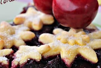 - Es el momento de estirar el resto de masa y forrar el molde ...lo llenamos con el relleno de cerezas que tenemos preparado y comenzamos a decorar la parte superior con las flores que tenemos cortadas de la misma masa ....dandole forma .