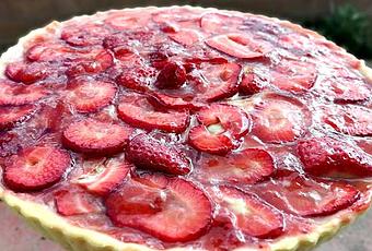 Para la MASA QUEBRADA- 150 g de harina floja o repostería - 75 g de mantequilla fría cortada a dados- 1 huevo- 1 cucharadita de levadura- 50 g de azúcar glas- Una pizca de salPara la CREMA PASTELERA- 4 yemas de huevo- 120 grs de azúcar molida- 50 grs de harina- ½ litro de leche- 1 vaina de vainillaResto de la TARTA- 8 fresones grandes- 1 bote pequeño de mermelada de fresa