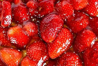 - Corta las fresas bien en rodajas o picadas a tu gusto. Deja algunas para la decoración partidas a la mitad longitudinalmente.