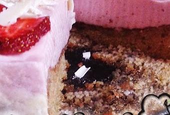 6.- A continuación, sacamos la tarta del molde. Lavamos las fresas,las secamos con papel de cocina y la cortamos en laminas. Hacemos una corona sobre la superficie con la fruta, ponemos una fresa partida por la mitad en el medio. Con un colador esparcimos azúcar glass sobre las fresas. Con la ayuda de un pelador de verduras, raspamos el cocholate sobre la tarta.7.- Batimos la margarina con el azúcar glass, dejamos que la crema se enfríe unos minutos en la nevera. Cubrimos el bizcocho con lamezcla. Ya esta lista para servir.