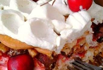 Modo de preparación:Lavamos las cerezas y guardamos 1/4 kilo. A las demás las quitamos las colas y los huesos.Derretimos el chocolate en micro y bañamos las cerezas que previamente hemos guardado. Colocamos estas cerezas sobre papel de cocina y dejamos secar el chocolate.Montamos la nata junto con 3 cucharas soperas de azúcar glase.Batimos la crema de queso junto con el resto de azúcar glase y añadimos la mitad de la nata montada. Mezclamos con la ayuda de una espátula y guardamos en la nevera.Preparamos la bandeja y empezamos a mojar las galletas, cubriendo la base de la bandeja con ellas.Cubrimos las galletas con una generosa cantidad de mermelada de fresas.Añadimos unas cucharas de nuestra crema de queso, generosas cucharas ;), y nivelamos la superficie. Colocamos cerezas sin huesos encima y seguimos con otra capa de galletas bañadas, mermelada y crema queso hasta que se terminan los ingredientes.Cubrimos la tarta con la nata que hemos guardado y colocamos cerezas bañadas encima.Guardamos la tarta en la nevera y la servimos muy fría.Enjoy it!