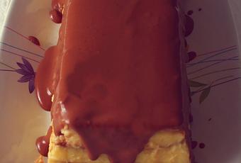 Antes de servir, bañamos la tarta fría con el chocolate.