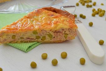 Ingredienes:1 lámina de masa quebrada150 gr guisantes de lata200 ml de nata3 huevos100 gr queso rallado curado1 cucharada de mostaza Dijon1 lata grande de atún 240 gr