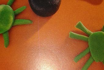- Recorte 2 arañas de fondant verde (o el color que desee) y péguelas. Si lo desea, haga unas bolitas de fondant negro para adornar el borde inferior de la tarta.
