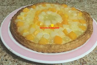 Esta fue la tarta que me hice en Noche Vieja y la verdad que me encanto porque el contraste de la suavidad de la crema y la explosión de sabores de las frutas, bueno voy a la receta.