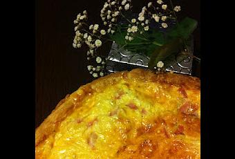 Así de sencilla es esta tarta, y sólo nos queda hornear sobre unos quince minutos o hasta que esté cuajada y doradita.