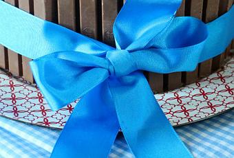 Colocamos un lazo que ayudará a que las barritas se queden fijas mientras la crema de chocolate se solidifica en el frigorífico y llenamos toda la parte superior de la tarta con los M&M´s.