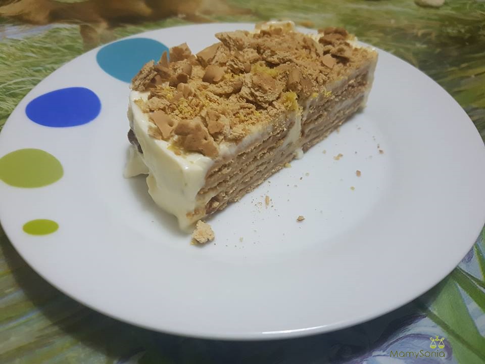 Adornamos con trocitos de galletas y ralladura de limón.