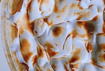 Montamos la tarta, rellenamos la base del molde con el relleno de lima, cubrimos con el merengue y con ayuda de un soplete de cocina doramos el merengue.