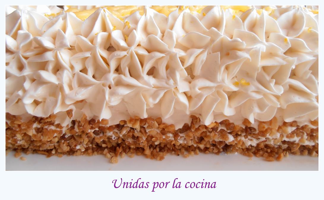 - Encima pondremos la crema de limón o lemon curd. Yo puse esta capa un poco más fina ya que el sabor de esta crema es más intensa.