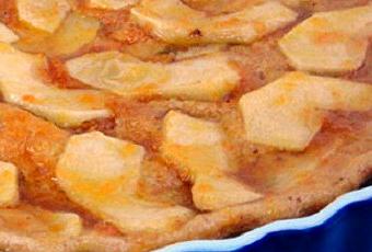 - Añadir 2 manzanas peladas y cortadas en láminas finas, y volcar todo el preparado en un molde apto para el microondas, ligeramente engrasado. Colocar encima las láminas de otra manzana y meter el molde al microondas 7´ a 600 vatios y 10´ a 800 vatios.