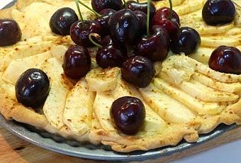 Ingredientes TARTA DE MANZANA con plátano y cerezas: