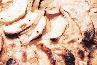 Paso 6: Engrasamos el molde y ponemos la masa en él. Cortamos la manzana reservada a gajitos y los colocamos adornando por encima de la masa. Rociamos con azúcar al gusto y metemos al horno.