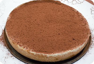 Vierte sobre la base de galletas, espolvorea por encima el cacao.